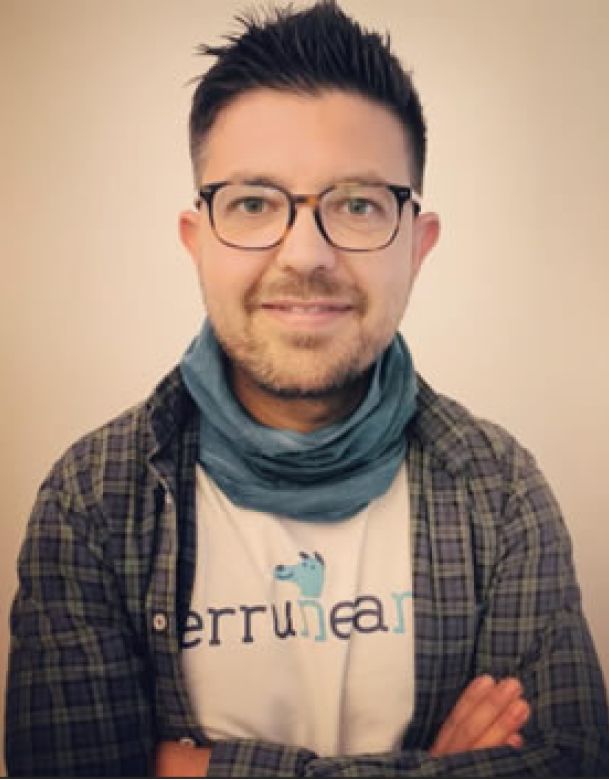 Máster Universitario en Aplicaciones del Perro a la Terapéutica Humana (U. Sevilla) y Máster en Dependencia e Igualdad en la Autonomía Personal (U. Jaén). Coordinador Máster Universitario en Intervención Asistida con Animales y fundador y CEO de Perruneando España.
