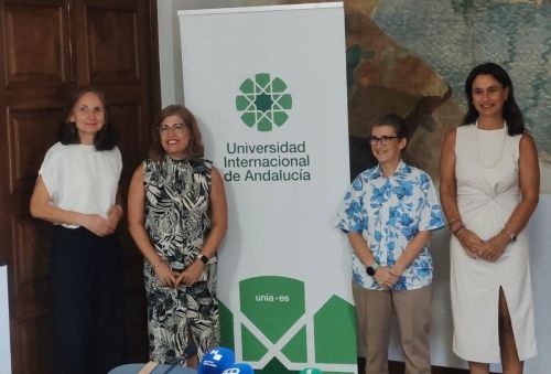 En el acto de presentación del plan formativo celebrado en la Sede de La Rábida de la UNIA han participado Adela de Mora, tercera teniente de alcaldesa del Ayuntamiento de Huelva, Reyes Sánchez, vicerrectora de Transferencia y Desarrollo Territorial de la Universidad de Huelva, María de la O Barroso, directora de La Rábida de la Universidad Internacional de Andalucía, y Francisca Segura, investigadora principal del proyecto.