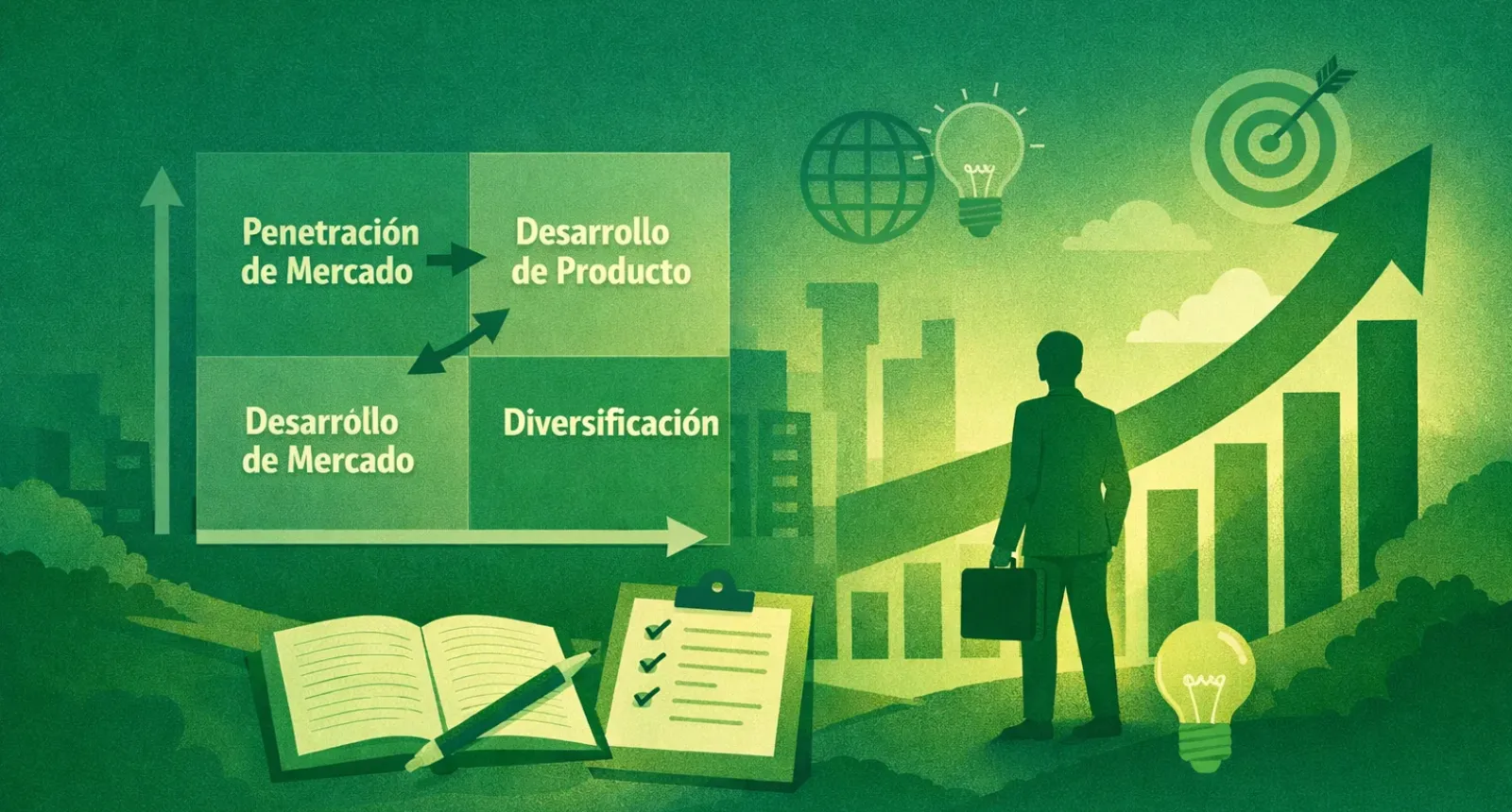 En este artículo verás qué es la matriz de Ansoff, qué variables considera, cuáles son sus cuatro estrategias, cuándo utilizarla y cómo aplicarla paso a paso, con un ejemplo y una plantilla para trabajarla.